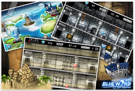 Lauft durch die Etagen und sammelt die Diamanten ein. Der Wechsel der Etagen erfolgt automatisch, wenn Ihr die Tür erreicht. Insgesamt gibt es 300 Level in verschiedenen Umgebungen zu meistern