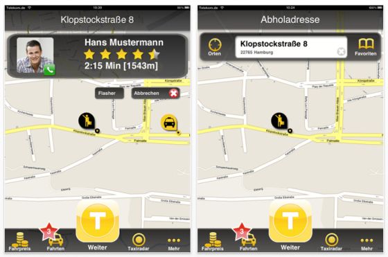 Die App myTaxi startet am 22. März in München. Mit myTaxi kann man ganz einfach über das iPhone, den iPod Touch (WIFI) oder das Ipad ein Taxi ordern. Ein Touch genügt und das nächstgelegene Taxi ist auf dem Weg zu Dir. Die Rufnummernsuche und der lästige Anruf bei der Taxizentrale entfallen. myTaxi lokalisiert dafür Deinen aktuellen Standort automatisch. Du bestätigst die Adresse, gibst – wenn gewünscht – noch besondere Wünsche ein – wie z.B. „Ich habe einen Hund dabei oder „mit EC-Karte bezahlen“ und bestätigst Deine Bestellung.