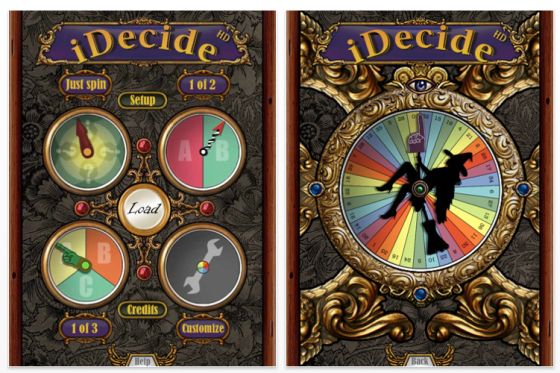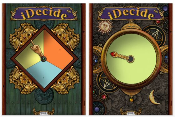 Wer ein iPad hat, sollte sich mal iDecideHD ansehen, so lange es noch kostenlos ist. Mit dieser wirklich wunderschönen iPad-App kannst Du Entscheidungen treffen lassen. Einfache ja oder nein Entscheidungen bis hin zu zu etwas komplexeren Dingen. Man kann die App auch als Ersatz der Flasche beim Flaschendrehen nehmen. Schaut Euch mal die Screenshots an, das ist schon außergewöhnlich aufwändig gemacht.