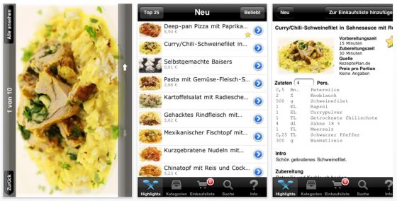 Ob man sie zur Anregung für eigene Kreationen braucht oder exakt nachkochen möchte: Mit der gerade kostenlos angebotenen Universal-App Rezepteplan.de HD kann man aus dem Internet rund 500 Rezepte abrufen und auf iPhone, iPod Touch und iPad darstellen lassen.Da es sich bei App um eine Auskopplung der Webseiten-Inhalte von Rezepteplan.de handelt, funktioniert die App nur mit Internetverbindung und um den vollen Funktionsumfang der App nutzen zu können, braucht man einen kostenlosen Benutzeraccount bei der Webseite.