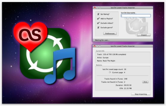 Die App importiert Deine Last.fm Lieblingstitel in iTunes und gleicht sie dort mit Deinen Tracks ab.