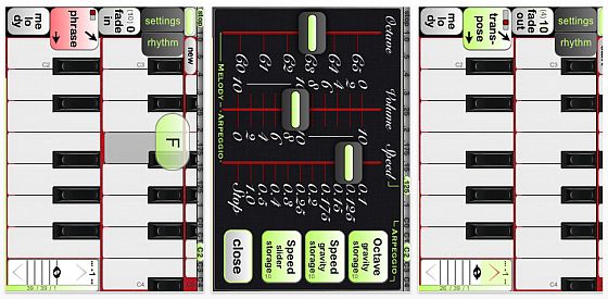 Matt Linzjett‘s Piano nutzt die Lagesensordaten, um Geschwindigkeit und Höhe (Oktave) der Töne während der Wiedergabe zu manipulieren. Die im Studio aufgenommenen Flügelsounds runden das so entstehende Klangerlebnis ab. Über die Arpeggio-Tonfolgen kann dann gleichzeitig eine Melodie gespielt werden.