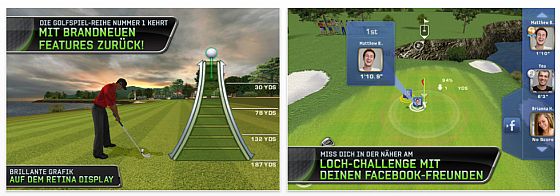 Im Spiel "Näher am Loch" geht es darum, mit nur einem Schlag den Ball näher ans Loch zu bekommen, als Deine Freunde. So setzt jetzt auch EA auf Facebook. Es sind aber auch alle anderen Features des Spiels wiederum verbessert worden. So hat man mit Tiger Woods PGA Tour 12 ein wirklich perfektes Golf Erlebnis auf seinem Gerät.