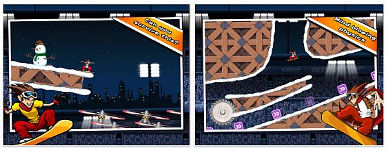 Hier siehst Du Screenshots von der iPad Version: iStunt2 Insane Hills lässt Dich einen Snowboard-Fahrer durchs Gebirge fahren, doch das ist schon recht anspruchsvoll.