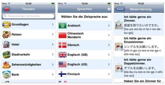 Jeder Satz, jedes Wort wird vorgesprochen, die kleinen Bilder lockern gekonnt auf - das Herausragende ist natürlich, dass die App 25 Sprachen enthält - und sich so als ultimativer Reisebegleiter empfiehlt.