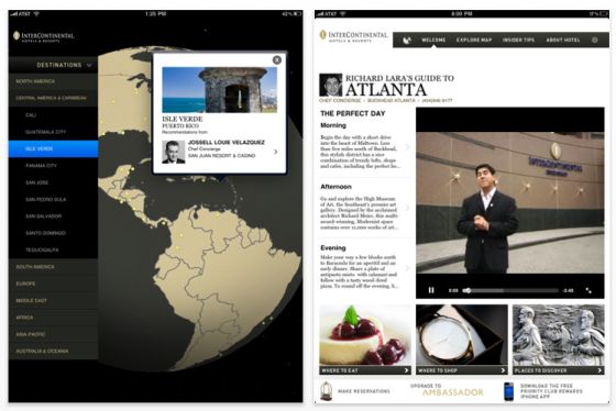 Schon länger habe ich eine ganz besondere App für das iPad auf meinem Gerät: Concierge Insider Guides heißt die von der Hotelgruppe Intercontinental herausgegebene App. In Deutschland noch immer unentdeckt, bietet die App Euch Insidertipps zu 120 Reisezielen von den Leuten, die den ganzen Tag ihren Gästen Tipps zu ihrer Stadt geben. Vorgestellt werden die Insider-Tipps in Filmen, die von den Concierges der Interconti-Hotels präsentiert und moderiert werden.