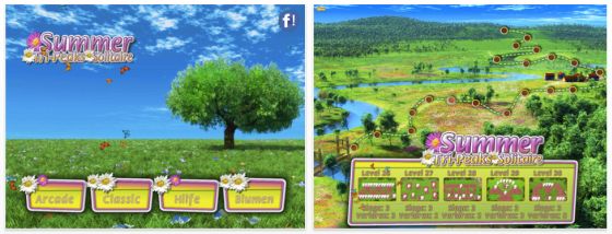 Besonders liebevoll gemacht und angenehm vertont, schleicht sich die gerade kostenlose App Summer Solitaire für iPad in unsere Herzen. So kann man also auch ein Solitaire-Spiel gestalten… In Sommerlandschaften eingebettet, spielst Du in 100 Leveln das klassische Kartenspiel, welches auf der „Tri Peaks“-Version von Solitaire basiert.