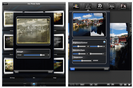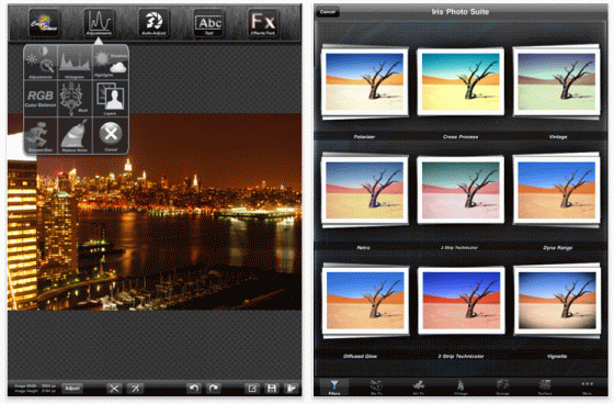 Die Bildbearbeitungssoftware Iris Photo Suite ist ebenfalls gerade kostenlos erhältlich. Ebenfalls gerade kostenlos ist die nochmals erweiterte Iris Photo Suite for iPad, deren Normalpreis zwischen 79 Cent und 2,99 Euro schwankt. Mit Iris Photo Suite kann man seine Photos jetzt auch auf dem iPhone und dem iPad wie auf dem Mac oder PC bearbeiten. Die App bietet hierfür einen sehr guten Funktionsumfang bei einfacher Bedienung. So kann man mit der App das Histogramm verändern, die Farbintensität einstellen und die Belichtung nachträglich ändern. Die App bietet darüber hinaus 72 Foto-Filter und Hintergründe. Man kann mit Layern arbeiten und hat so die Möglichkeit, seine Kreativität voll einzusetzen.