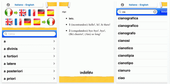 Facile Lingue ist ein einfaches Wörterbuch, mit dessen Hilfe man aus fünf Sprachen ins Italienische übersetzen kann, oder italienische Wörter in 5 Sprachen anzeigen lassen kann.