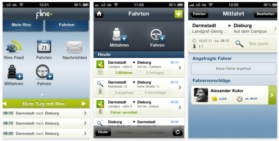 Wenn es nach dem flinc-Team geht, wird „flincen“ bald eine ernstzunehmende Alternative für die tägliche Mobilität. Bevor jemand mit dem Auto irgendwo hinfahren will, kann er in Zukunft prüfen, ob er jemanden aus seinem Bekannten-, Kollegen- oder Freundeskreis auf der Fahrt mitnehmen oder bei jemand anderem mitfahren kann. Auf kurzen wie auf langen Strecken. Das Vermittlungssystem funktioniert weitgehend automatisch und lässt sich sowohl über PC, über eine Smartphone-App oder integriert in die iPhone-Navigationslösungen von NAVIGON bedienen. Ein intelligentes Routenmatching vermittelt auch Mitfahrer, die auf der Fahrtstrecke zusteigen könnten und/oder nur eine Teilstrecke mitfahren. Dabei navigiert das System den Fahrer automatisch zum Abhol- und Zielort des Mitfahrers.