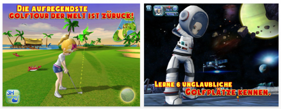 Nun aber zu Gameloft: Deren Spiele Let’s Golf und Let’s Golf 2 sind sehr beliebte Spiele. Im Gegensatz zu dem etwas ernsthafter wirkenden Tiger Woods PGA Tour 12 von Electronic Arts hat man hier ein Spiel mit niedlichen Spielfiguren und comicstyle Grafik geschaffen, das alle Altersgruppen anspricht. Das Spiel wurde in Aktionen auch mal für 79 Cent verkauft, kostete normal aber 3,99 Euro. Der am 11. August veröffentlichte Nachfolger Let’s Golf 3 kam nun kostenlos. Die Vorgängerversionen sind im App Store nun nicht mehr erhältlich, was ich persönlich für eine Fehlentscheidung halte.
