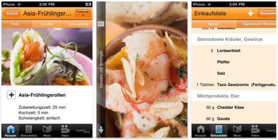 Heute gibt es mit der App Lieblingsrezepte eine App für iPhone und iPod Touch mit den besten 70 Kochrezepten zu beliebten und bekannten Gerichten kostenlos. Zu jedem Gericht werden Schritt-für-Schritt-Anleitungen gezeigt und die Zubereitung der 10 besten Rezepte wird per Videoanleitung vorgeführt und lädt damit zum Mit- und Nachmachen ein. Zahlreiche Kochtechniken in Wort und Bild ergänzen den Rezeptteil.