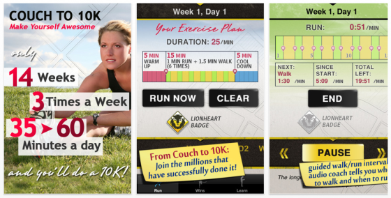 Die gerade erschienene Lauf-Training-App 10K Runner ist bis morgen Nachmittag kostenlos. Der Normalpreis liegt bei 3,99 Euro. Die App bietet Dir ein 14 wöchiges Traningsprogramm, in dem Du Schritt für Schritt zum regelmäßigen Laufen gebracht wirst. Am Anfang startet die App noch mit zahlreichen Geh-Abschnitten, die dann aber immer kürzer werden und durch Laufen ersetzt werden. Die in deutscher und englischer Sprache verfügbare App begleitet Dich mit einem Trainer durch die Laufübungen und belohnt Dich, wenn Du die Übungen abschließt. Eine Überwachung findet aber nicht statt.