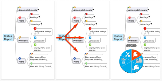 Das Menü ist stets griffbereit! Über das Menü können Sie Zweige ausschneiden & einfügen, löschen und als neue Map speichern.