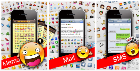Die gerade kostenlose App Emoji (Emoji + Text Kunst) bietet Dir 460 Bildchen zur Aufnahme in Deine mails, Facebook-Botschaften, SMS, MMS und mehr...