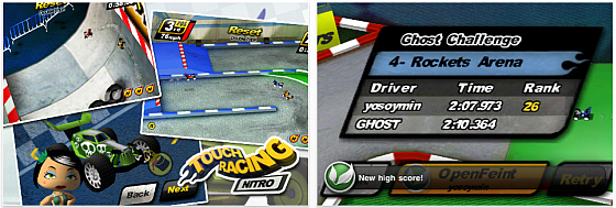 Im Spiel Touch Racing steuerst Du ein Modellauto über verschiedene Rennstrecken, sammelst Boni ein und versuchst, Deine Gegner zu besiegen. Das Spiel bietet drei Schwierigkeitsstufen, die über die Aggressivität der Gegner und die Steuerung definiert werden.