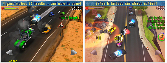 Heute ist ein vielseitiges Spiel für iPhone, iPod Touch und iPad kostenlos: In Reckless Getaway flüchtest Du nach einem Bankraub vor der Polizei oder versuchst in einer zweiten Spielwelt auf Deiner Fahrt alles zu zerstören, was Deinen Weg kreuzt. Hier darf man alles machen, was sonst verboten ist: Gefährliche Stunts und jedes andere Fahrzeug verschrotten, Du kannst alles zerstören, was sich Dir in den Weg stellt. Aber Vorsicht: Zerstörst Du Dich selbst, oder verlässt Du die vorgegebene Route, verlierst Du Punkte.