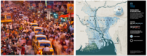 Tolle Bilder und animierte Grafiken helfen bei der Vorstellung, welche Bedeutung das Ansteigen der Weltbevölkerung für unsere Erde hat. Enthalten sind auch die Megatrends, die sich daraus ergeben.