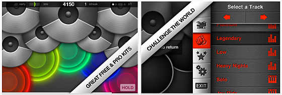 Durch die Gemeinschaft der App Nutzer werden immer wieder neue Varianten entwickelt, so dass die App nie langweilig wird. Zur Verfügung stehen verschiedene Drum-Sets, die zudem noch interessant gestaltet wurden. Über die Einstellungen, die Du durch längeres Halten des Hold Buttons erreichst, kannst Du aus drei Drum-Kits und vier Styles auswählen. Klarer Tipp für alle Musik-Freunde!