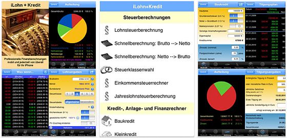 iLohn+Kredit enthält insgesamt 12 Finanz- und Steuerrechner in einer einzigen App, mit einem Umfang, der keine Wünsche übrig lässt: Brutto-/Netto-Rechner, Kredit- und Darlehensrechner, Anlage- und Entnahmerechner, Umsatzsteuerrechner u.v.m.- Normalpreis: 2,99 Euro – heute 1,59 Euro.