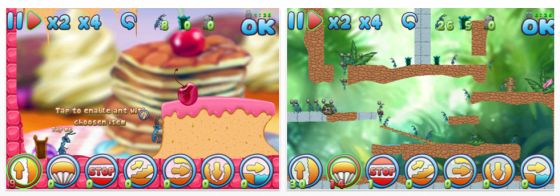 Natürlich lauern unterwegs viele Gefahren – und so hast Du einige Hilfsmittel zur Verfügung, um den Ameisen den Weg zu ermöglichen. An Abhängen kannst Du ihnen zum Beispiel einen Fallschirm umhängen, Du kannst sie Löcher graben lassen und noch einiges mehr.