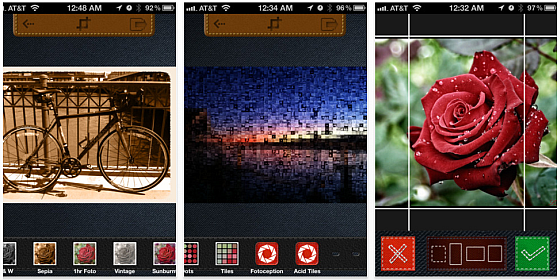 So kann man natürlich sein Bild in schwarz-weiß umwandeln, mit Sepia-Effekt auf alt trimmen oder auch als 1 Stunden Entwicklungsbild farblich gestalten, es gibt aber auch weitere Effekte, mit denen Ihr die Sättigung erhöhen könnt, eine Billigkamera simulieren, Halbtöne und Rasterungen einfügen könnt. Besonders interessant fanden wir den Fotoception-Effekt, bei dem das Bild aus vielen Minibildern zusammengesetzt wird. Allein dafür lohnt sich die App schon.