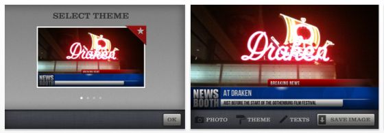 Das geht ganz einfach: Erst lädst Du Dir die App News Booth, nimmst ein Bild aus Deinem Fotoalbum oder machst ein neues Foto. Dieses Foto kannst Du dann so einpassen, wie es Dir gefällt und dann die Headline-Texte bearbeiten. Zur Zeit gibt es vier Vorlagen, es sollen aber bald noch mehr dazukommen. Auch an einer iPad Version wird bereits gearbeitet. (Unser Vorschlag: Macht eine Universal-App daraus)