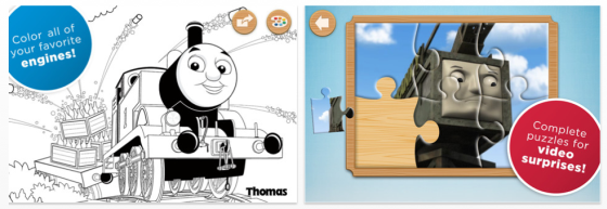 Jeder, der Kinder hat, kennt die Fernsehserie Thomas und seine Freunde, das ist die mit den vermenschlichten Lokomotiven, die zahlreiche Abenteuer zu bestehen haben. Zur Serie gibt es inzwischen auch einige Apps, die sich an Kinder richten, aber leider ausschließlich in englischer Sprache sind. Wenn man mit seinem Kind eine solche App spielen möchte, sollte man also dabei bleiben. Die heute kostenlose App Thomas & Friends Engine Activities bietet Puzzle- und Malspaß sowie Memory-Spiele in einer App, die als Universal-App auf iPhone, iPod Touch und iPad läuft. Meine klare Empfehlung lautet allerdings: Einsetzen nur auf dem iPad – sonst gibt es Tränen, denn die auszumalenden Felder sind für das iPhone einfach zu klein – selbst für Kinderfinger.