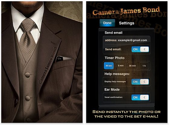 Die heute kostenlose App Camera James Bond verwandelt Dein iPhone auf Wunsch in eine vollwertige Spionage-Kamera, mit dem Du unentdeckt Fotos und kleine Filme aufnehmen kannst. Der Clou dabei: Niemand sieht, was Du machst, denn das Display bleibt einfach schwarz. Tippst Du einmal, wird ein Foto aufgenommen, tippst Du zweimal wird gefilmt. So einfach ist das.