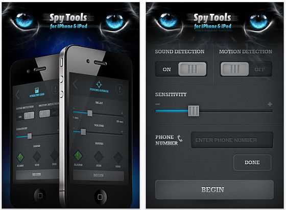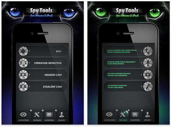 Die App Spionagetools für iPhone & iPod war eine ungewöhnliche Zusammenstellung mehr oder weniger nützlicher Einzelfunktionen in einer App, die sich unter dem Thema Geheimes und Verdächtiges zusammenfassen lassen.