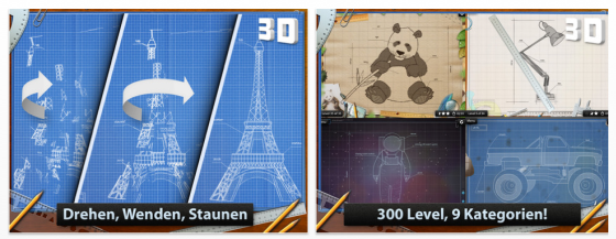 Im Laufe deiner Erkundungen wirst du neue Bilder freischalten, die deinem Trophäenbereich von Blueprint 3D hinzugefügt werden. Im Game-Center gibt es zahlreiche Erfolge, die Du nach und nach freischalten kannst.