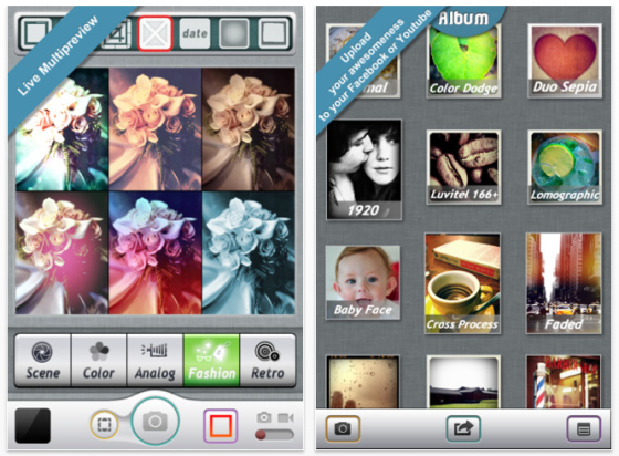 Leicht zu bedienende Foto- und Film-App mit Live-Vorschaufunktion und ausreichender Filteranzahl. Import aus der Photoroll nicht möglich – auch das nachträgliche Bearbeiten von Bildern ist nicht möglich.