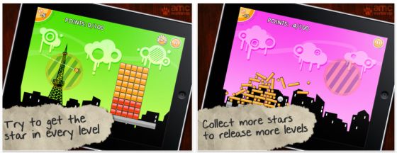 Schieße mit dem Ball Deiner Wahl auf den Stapel und versuche, mit möglichst wenig Schüssen alle Klötzchen abzuräumen.