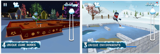 Der Kurs liegt im Eis, klar, dass man da als Schneemann spielt, oder? Die Aufgaben werden von Bahn zu Bahn besser und schwerer zu lösen.