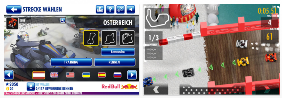 Die Getränkemarke Red Bull hat ja bereits mit mehreren guten Spielen ihr Marketing unterstützt. Das im März 2012 veröffentlichte Spiel Red Bull Kart Fighter World Tour für iPhone, iPod Touch und iPad macht da keine Ausnahme. Klar, dass man am Rande der Rennstrecken immer wieder Hinweise auf die verschiedenen Sportsponsoring-Aktivitäten des Energy-Drinks hingewiesen wird. Das Spiel ist aber sehr nett gemacht. Kartrennen aus der Vogelperspektive mit verschiedenen Steuerungsmöglichkeiten bis hin zur fast vollautomatischen Steuerung. Am Besten man probiert selbst aus, welche Steuerung einem am Besten gefällt. Wichtig: auf den Rennstrecken gibt es öfter mal ein Red Bull-Logo – wenn Du das überfährst, schaltest Du für begrenzte Zeit einen Turbo zu und kannst leicht ein paar Gegner überholen.