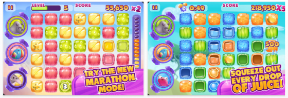 Für alle, die gerne Bejeweled und andere 3er-Kombinationspuzzle spielen, ist das gerade kostenlose Blockolicious HD sicher einen Download wert. Das Spiel kommt mit neuen Ideen und gehört zu der Sorte „ok, einen Versuch mache ich noch“. Das Spiel bietet zwei Spielmodi: Den Sprint und den Marathon. Im Sprint muss alles schnell gehen: Bei einer Spieldauer von zwei Minuten gilt es, möglichst viele Gruppen gleicher Symbole aufzulösen, diese wandeln sich dann in in Symbole mit Flüssigkeit drin. Diese Flüssigkeitssteine haben aber nur eine kurze Lebensdauer… Schafft man es, drei Steine mit Flüssigkeit in einer Farbe in senkrechter oder waagrechter Reihe anzuordnen, kann man darauf tippen und erhält einen Stein mit einer Bombe. Tippt man auf diesen Stein, werden mit einem Schlag alle Symbole gleicher Farbe aufgelöst – und es ergeben sich dabei wieder neue Kombinationen.