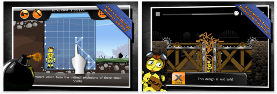 Die Konstruktion kannst Du ändern, Du kannst einzelne Schritte zurückgehen, Deine neue Konstruktion ausprobieren und sehen, was passiert. Und so erwischt man sich bei Dummy Defense schon bald dabei, die unmöglichsten Gebilde auszuprobieren – immer in der Hoffnung, dass der Dummy überlebt.