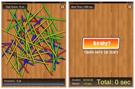 Das Spiel bietet zwei Spielmodi: Einmal muss man versuchen, möglichst viele Stäbchen innerhalb der vorgegebenen Zeit aufzuheben, in der anderen Spielversion wird die Zeit gemessen, die man für das Abräumen aller Stäbchen braucht. Für beide Spielarten gibt es Bestenlisten im Game-Center.