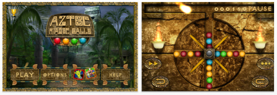 In Aztec Magic Ball laufen verschiedenfarbige Bälle auf eine Scheibe zu und fallen in die Vertiefungen der Scheibe. Ihr müsst die Scheibe so drehen, dass die Bälle möglichst Zweierkombis derselben Farbe bilden, die Ihr dann per Druck auf die Sammeltaste auflösen könnt. Jede der Vertiefungen kann 5 Bälle aufnehmen. Zum Drehen der Scheibe nach links oder rechts nutzt Ihr die Pfeiltasten.Es gibt Magic Balls, die erst nach dem Fall in eine der Vertiefungen ihre wahre Farbe offenbaren. Dazu gibt es auch Feuerbälle, die alle Bälle in einer Vertiefung wegbrennen. Diese Feuerbälle kann man gut einsetzen, um vorherige Fehler zu korrigieren.