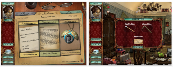 Hier seht Ihr die Version für iPhone und iPod Touch: Die Räume sind, wie man es bei den Hidden Objects Adventures erwarten kann, vollgestopft und Ihr müsst die angegebenen Gegenstände im Bild finden und antippen. Manche der Gegenstände haben ein Geheimnis, das Ihr lüften müsst.