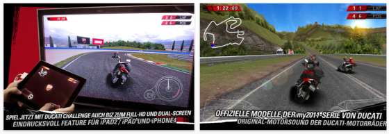 Die Temperaturen sind sommerlich – die schönste Jahreszeit für Motorradfahrer ist in vollem Gange. Wer selbst kein Motorrad hat, kann heute kostenlos die Ducati Challenge (für iPhone und iPod Touch) und Ducati Challenge HD (für das iPad) aus dem App Store runterladen und auf seinem iPad oder iPhone richtig Gas geben. Das aufwändig gemachte Spiel bietet dabei nicht nur Rennstrecken, auch die von Motorradfahrern so geliebte kurvige Bergstrecke ist dabei und ein mittelalterliches Städtchen sowie die City mit all ihren Herausforderungen.