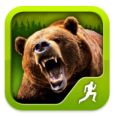 Du steuerst einen Läufer aus der Verfolgerperspektive, der sich hier auf der Flucht vor einem Bären befindet. (Bear Grylls ist nicht der Bär, den man am Anfang sieht, sondern ein Survival-Experte, der durch seine TV-Reportagen „Man against Wild“ bekannt wurde).