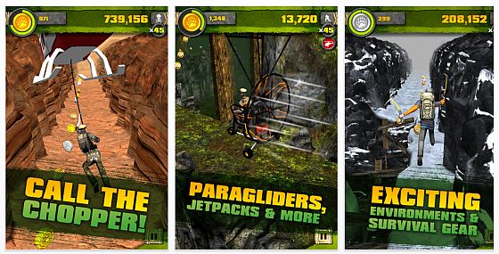 Und doch gibt es auch ein paar Unterschiede: Die Grafik wirkt hochwertiger, dazu gibt es neue Hindernisse, wie zum Beispiel eine Herde Hirsche, die Deinen Weg kreuzt. Durch die Einführung von Schrägen, die Dein Läufer runterrutscht, wirkt das Spiel sogar schon fast dreidimensional. Ein Levelsystem multipliziert die Punkte, die man für die Rangliste im Game Center braucht. Wie gewohnt gibt es auch in diesem Spiel zahlreiche Auszeichnungen, die allerdings nicht mit Zusatzmünzen belohnt werden.