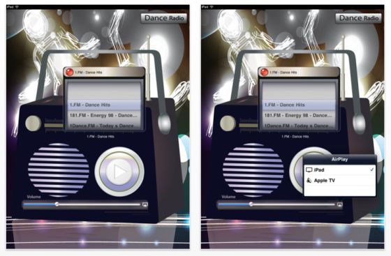 Das Design von Dance Radio (hier die iPad Variante) ist einfach und funktional. Die Senderauswahl ist hervorragend – und mit der App spielt Dein iPhone oder iPad schier endlos Dance.