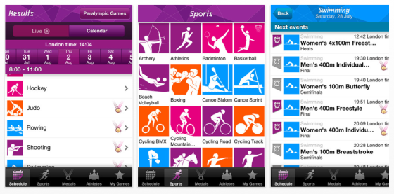 Die offizielle App zu den Spielen mit Ergebnissen für London 2012 liefert die neuesten Meldungen, Spielpläne und Ergebnisse in Nachrichtenform und ermöglicht es Benutzern, den aktuellen Stand aller olympischen Disziplinen (25. Juli bis 12. August 2012) live abzurufen.