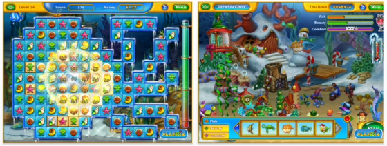 Im Aquarium ist der Winter ausgebrochen. In dieser Auskopplung von Fishdom hat Playrix über 100 winterlich anmutende Ergänzungen für das Aquarium erstellt, die man sich durch das Kombinieren von Symbolen verdienen kann.
