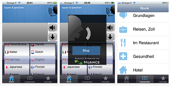Für den Privatgebrauch und unterwegs ist die App Meine Übersetzerstimme gut geeignet – für professionelle Nutzung gibt es andere Anbieter (z.B. Linguatec aus München)