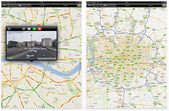Live Street View Free bringt Euch auf iPad, iPod Touch und iPhone die besseren Google-Karten zurück. Wie gewohnt gibt es drei Ansichten: Karte, Satellit und Hybrid. Dazu die bekannte Standortbestimmung mit dem Fadenkreuz. Unter Menu könnt Ihr die Orte eingeben, die Ihr sucht. Gibt es vor Ort Street View Bilder, so öffnet sich auf dem iPad ein kleines Fenster mit der Straßenansicht.Auf dem iPhone und iPod Touch kann man die Straßenansicht im nahezu Vollbildmodus ansehen.