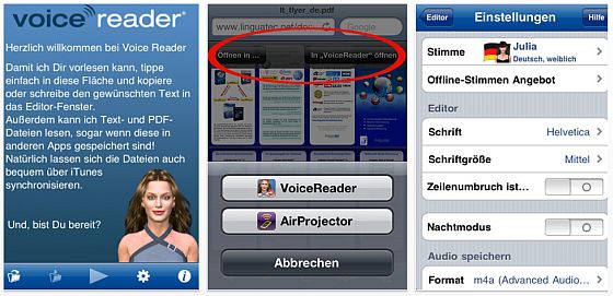 Voice Reader IconLinguatec ist der Sprachsoftware-Spezialist aus München, der mit seinen Wörterbüchern und weiteren sprachbezogenen Anwendungen für iPhone, iPod Touch und iPad zeigt, wie man sein iOS-Gerät mit Apps so aufrüsten kann, dass der Umgang mit Sprachen deutlich vereinfacht wird. Das Unternehmen hat nun die Voicereader-App überarbeitet und um neue Funktionen ergänzt.
