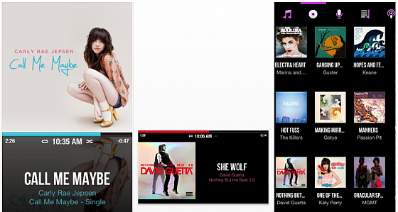 Der CarTunes Music Player lässt sich auch im Auto per Aux Kabel nutzen – und natürlich beim Joggen, nebenbei beim Arbeiten, und, und, und. Die Darstellung der Albentitel gibt es in verschiedener Anordnung, wer möchte kann sich auch alle seine Alben als Kachelwand anzeigen lassen.